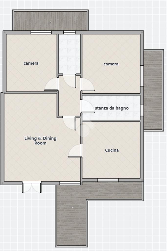 La zona notte, ben separata dagli ambienti giorno, si compone di due camere da letto matrimoniali, entrambe spaziose e con accesso diretto ai balconi, offrendo così ambienti luminosi e arieggiati. Ogni stanza può essere personalizzata secondo le proprie esigenze. A completare la disposizione interna troviamo i doppi accessori: uno finestrato, dotato di comodi sanitari e vasca da bagno; l’altro con uscita sul balcone, perfetto come secondo bagno o lavanderia. Entrambi presentano finiture sobrie e funzionali.