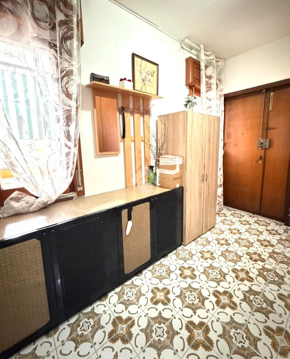 L’ingresso conduce a un ampio disimpegno, che garantisce una distribuzione razionale degli ambienti, con la presenza di un ripostiglio utile come spazio di servizio o dispensa.